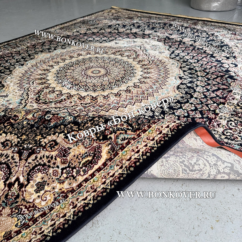 Отличный ковер , правда на размере 160х400 см разместилось две серединки - так даже гармоничнее ! Цвет темно-синий - камера плохо передает